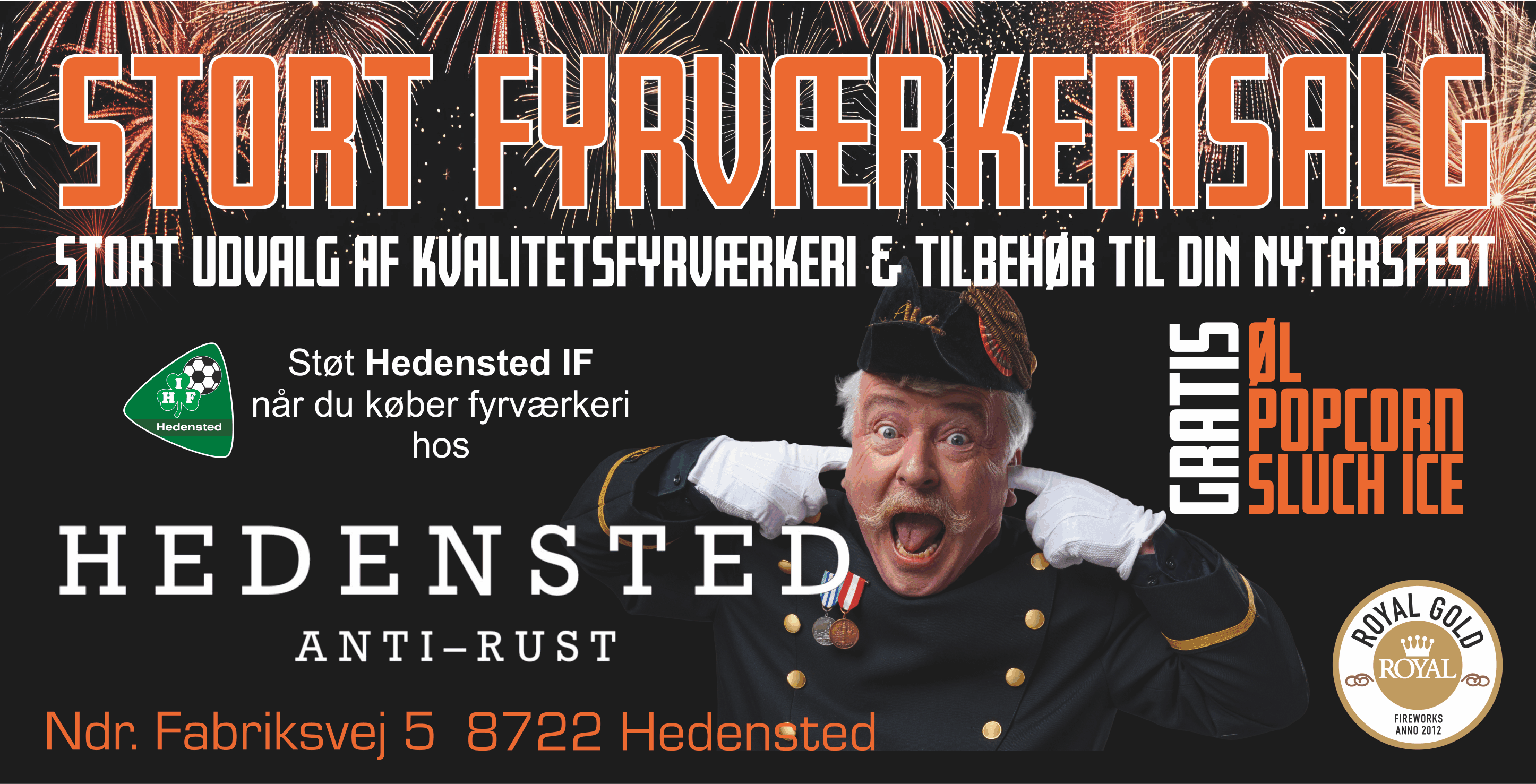 KLUBNYT - Hedensted IF har indgået en aftale med virksomheden Hedensted Anti-Rust, der sælger fyrværkeri her i december.